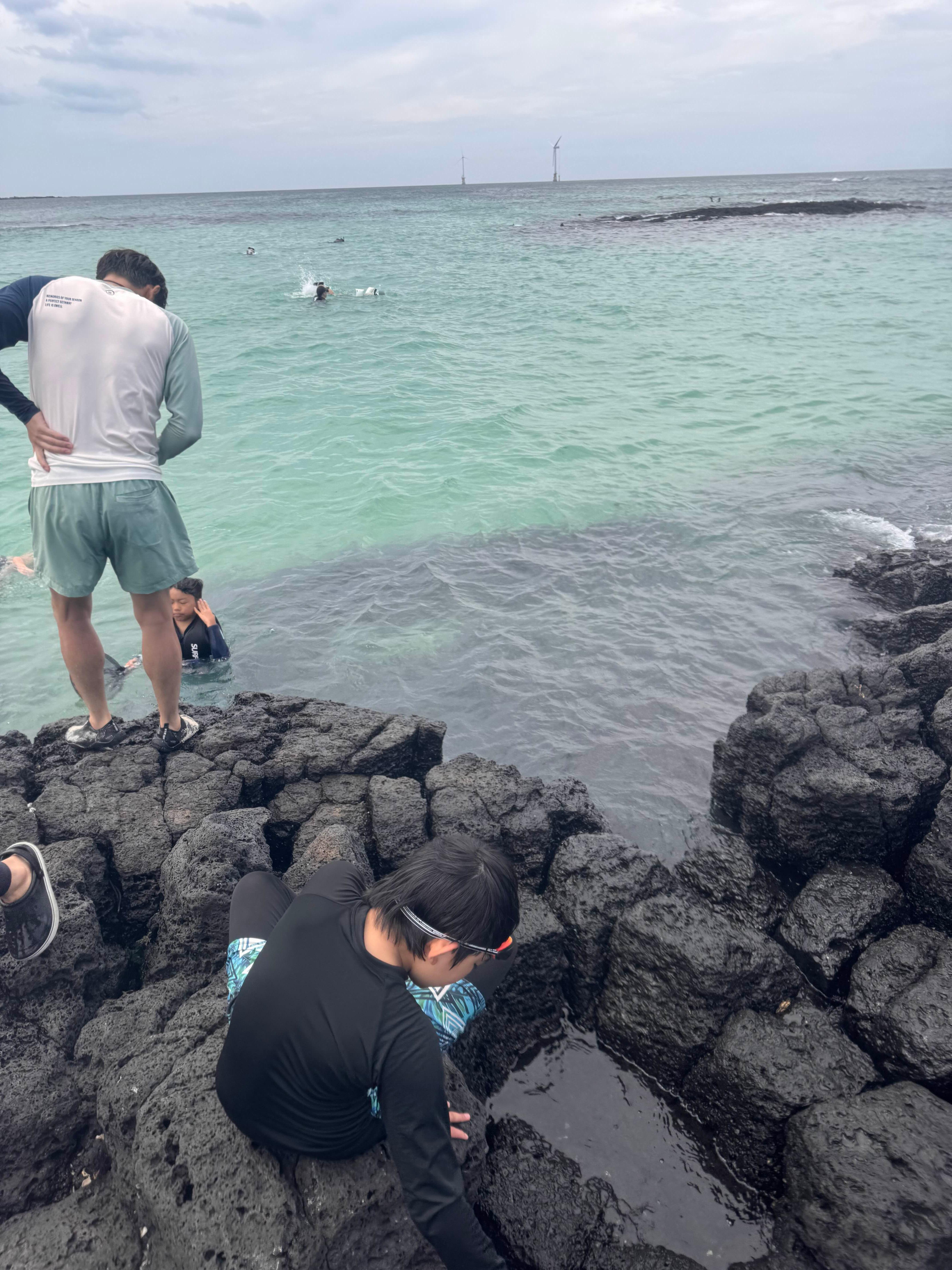 바위 근처에선 작은 물고기들이 깜짝 등장하기도 해서 아이들이 너무 좋아했어요.